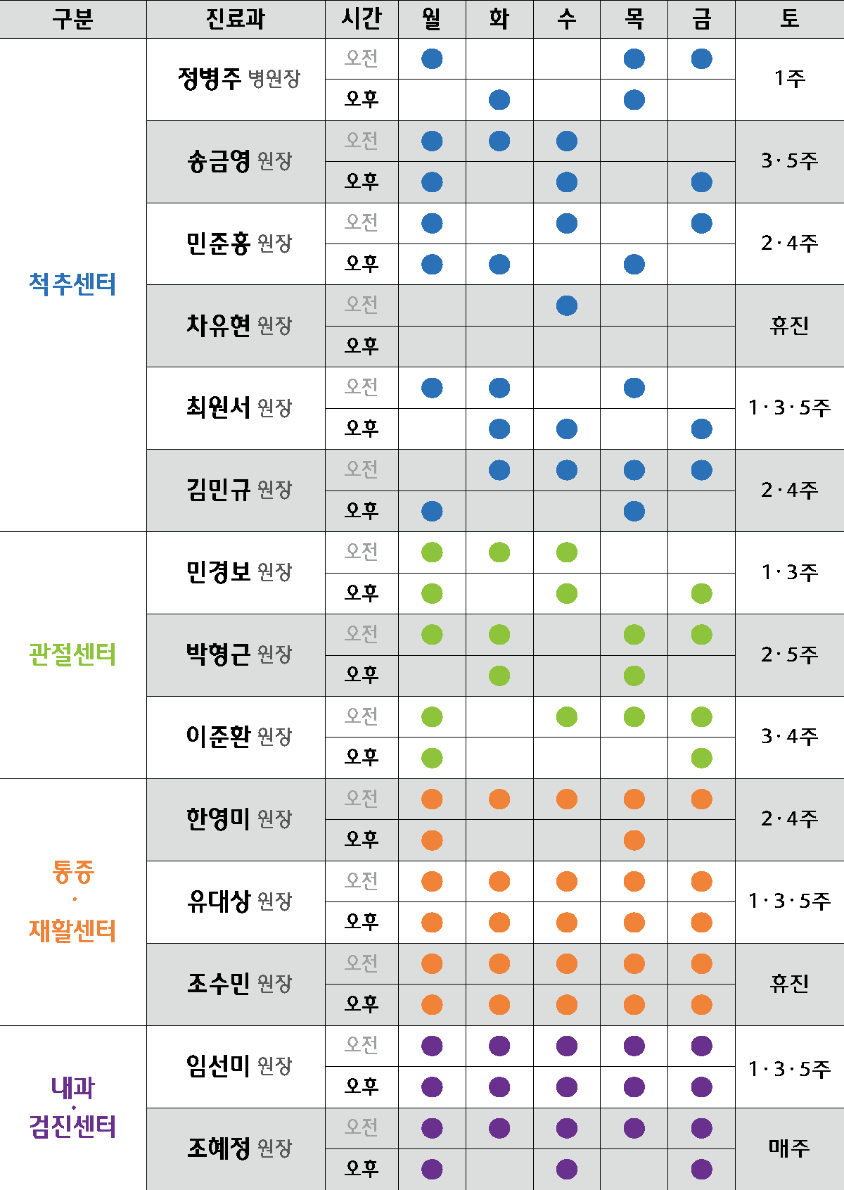 오전 09:00 ~ 오후05:30 오전 09:00 ~ 오후01:00 일요일·공휴일 휴진